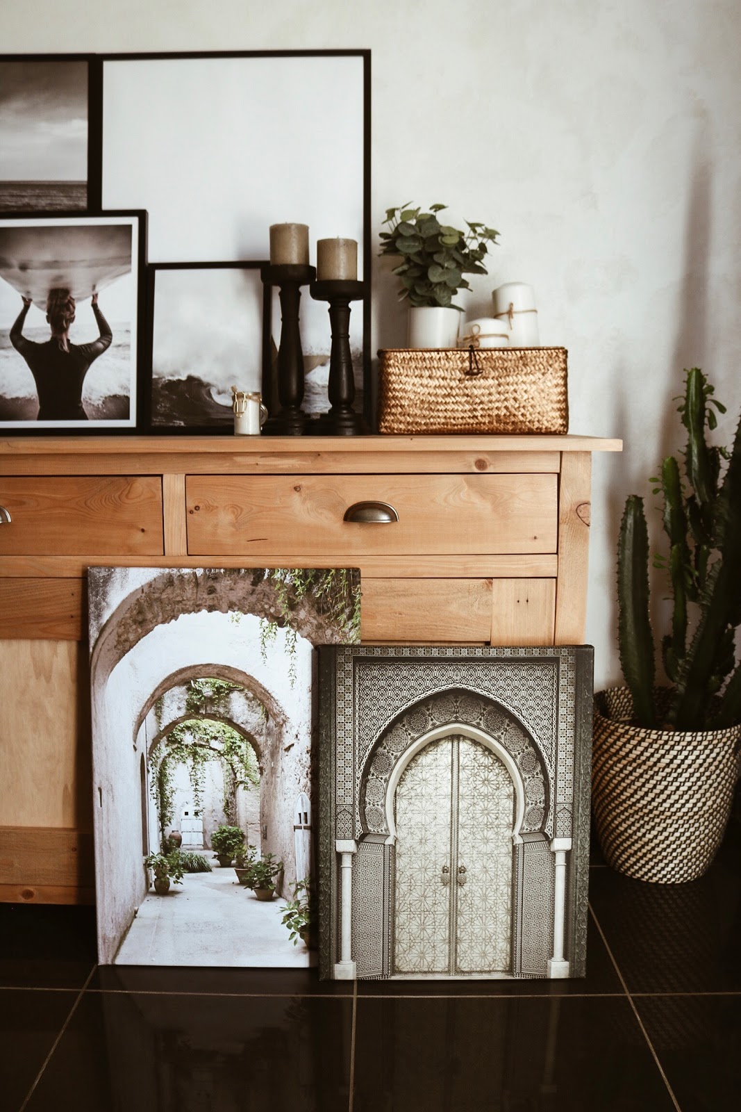 Hello tout le monde, tout juste en week-end j'en profite pour vous montrer les deux nouveaux éléments de déco qui ont rejoint mon salon. J'ai sélectionné deux tableaux chez Pixers, et j'ai vraiment adoré ces deux images qui invitent complètement au voyage et collent donc pile poil dans l'univers un peu bohème de mon salon. Au milieu du rotin, de l'eucalyptus et du bois, cette porte et cette petite ruelle pleine de verdure ont tout à fait trouvé leur place. J'ai plutôt tenté les toiles imprimées, que je trouve beaucoup plus qualitatives en règle générale qu'un simple cadre. Je vous laisse découvrir le résultat en images.