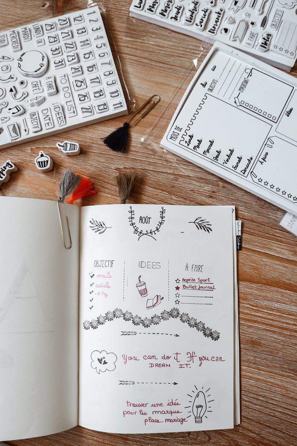 J'ai commencé mon bullet journal en juillet, mais j'ai tout fait à la main, c'est long ahah, mais les tampons c'est une super bonne idée !