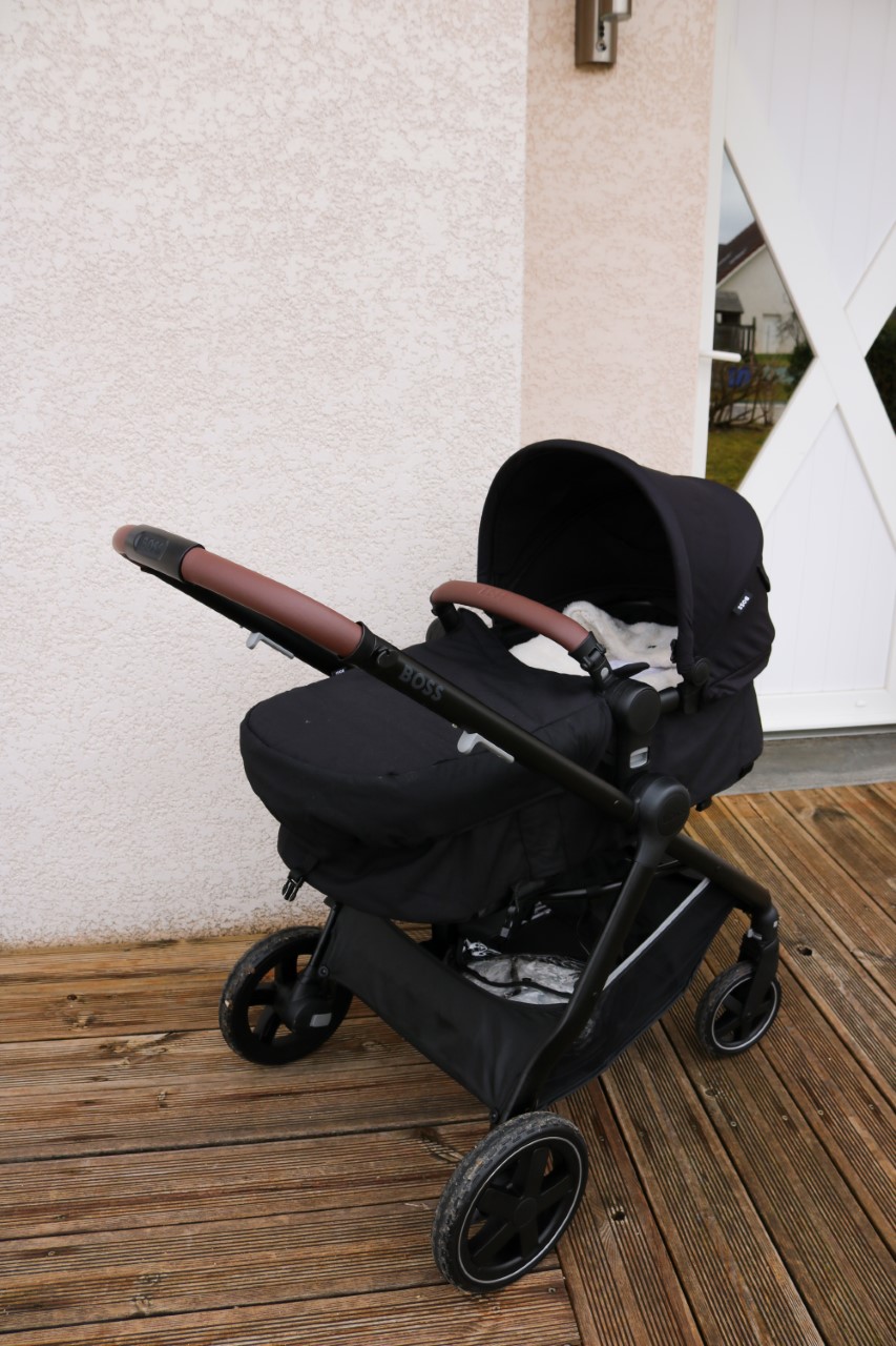 Premier point positif : la poussette est super jolie ! Sobre, avec la poignée en cuir, et une jolie association de noir et de marron. La marque reste discrète, avec quelques logos BOSS sur les poignées. Le design est totalement approuvé !