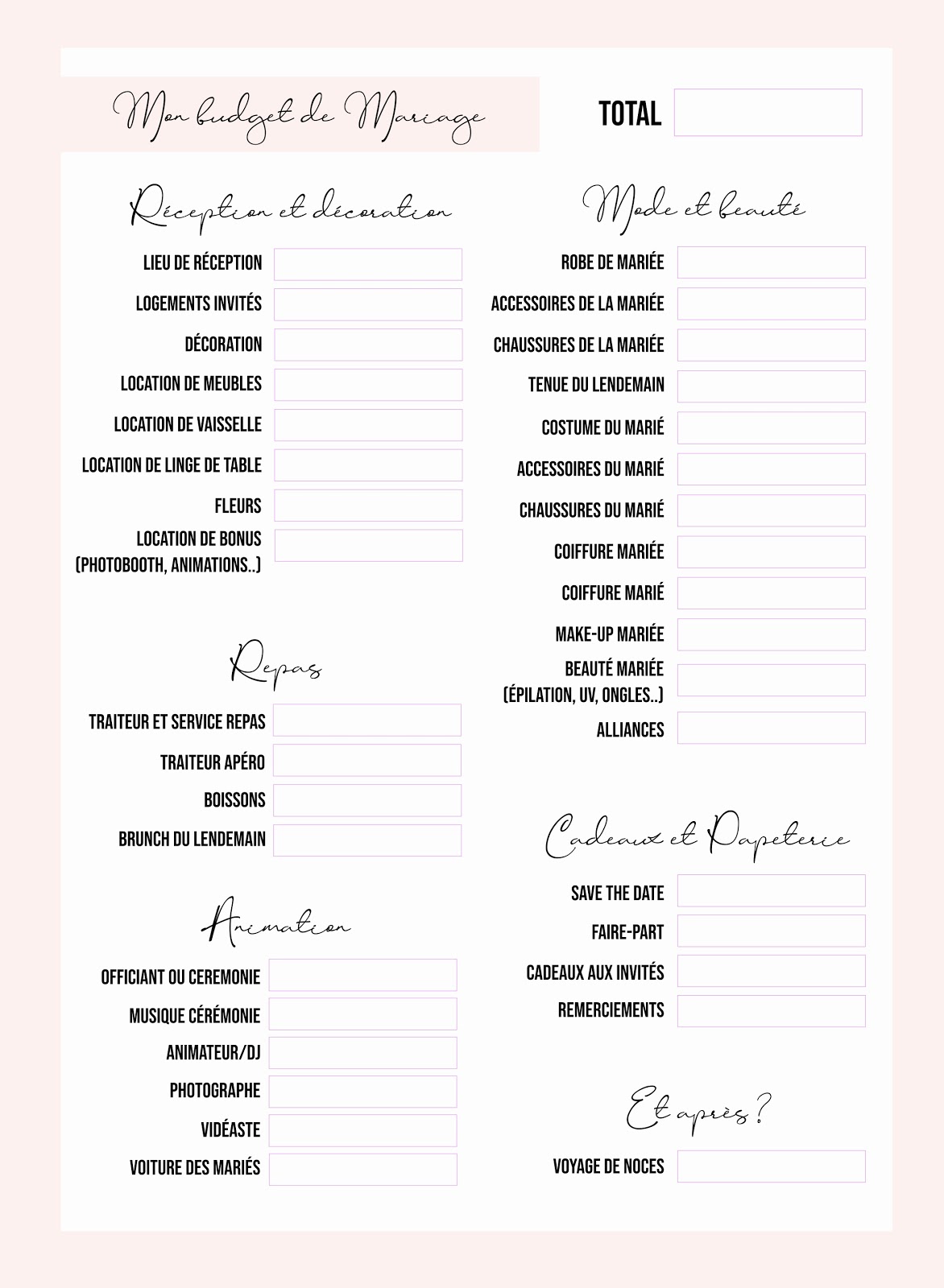 Organisateur Mariage 3 : Le Récap à idées (par thèmes) :