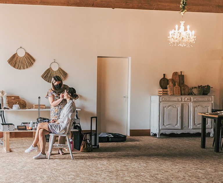 Un peu de blabla par ici pour vous raconter le déroulé de notre samedi de mariage. Le vendredi soir nous avons fait la cérémonie à la mairie et nous nous sommes dit "oui" officiellement mais en petit comité, avec seulement nos proches. Le soir on a fait la fête et autant vous dire que le réveil était un peu difficile, surtout que je n'avais pas réussi à m'endormir avant 4h du matin. À y réfléchir, on est super contents d'avoir séparer en deux jours le mariage (trois jours avec le brunch du dimanche), ça nous a permis de prendre davantage notre temps pour se préparer le samedi. Je vous raconte les préparatifs ci-dessous.